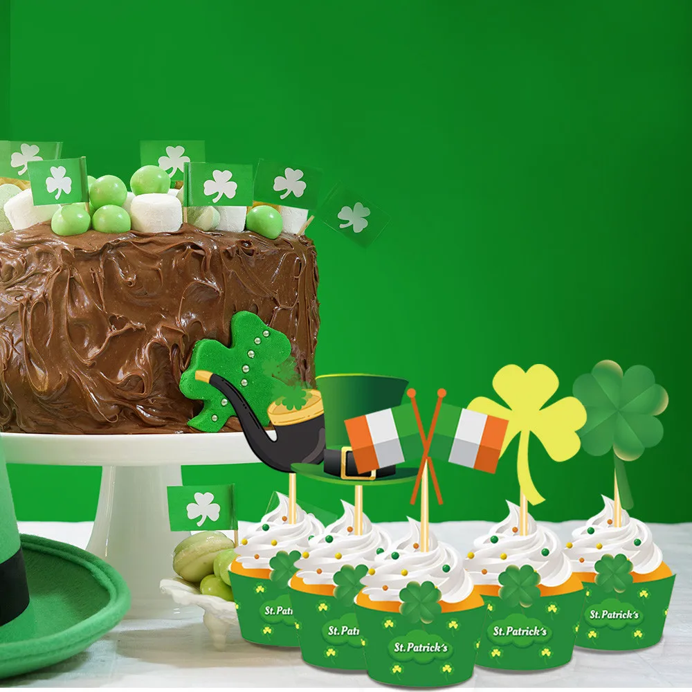 Happy St Patrick S Day Cake Topper Party Dcorations Green Four Leaf Clover Cupcake Wrapper Ireland Cake Decorating Supplies Cake Decorating Supplies Aliexpress